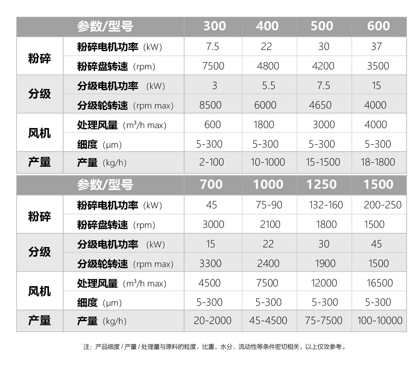 采用德国技术,高精度机械粉碎机,并不断技术创新升级,适用50目-5000目(300μm-2.5μm)。